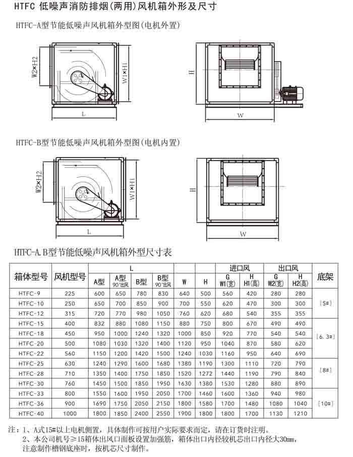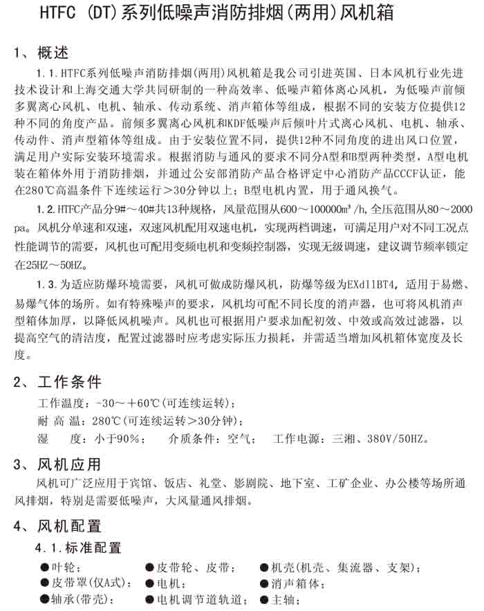 · 一、HTFC(DT)-I、II、V 系列低噪聲消防排煙(兩用)風(fēng)機箱