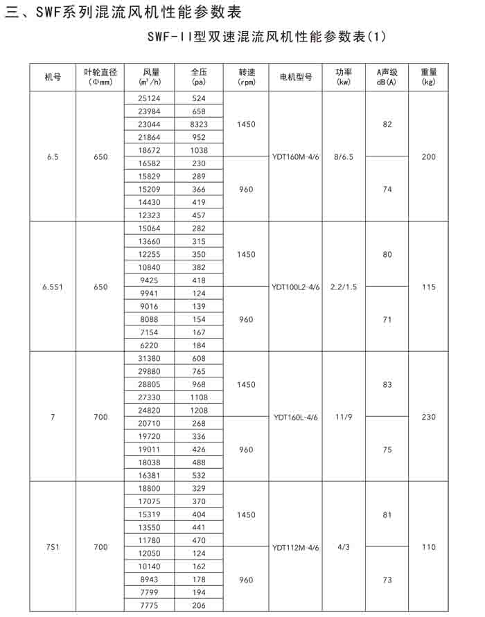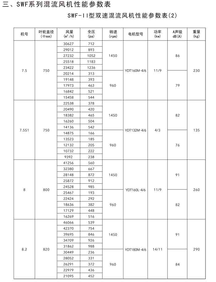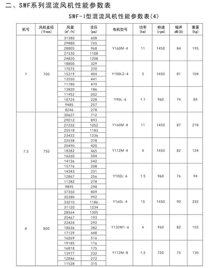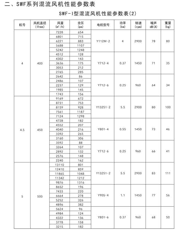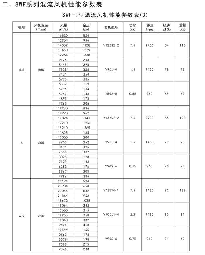 · 二、SWF(HLF、GXF)-I、II、H 系列高效混流風(fēng)機(jī)
