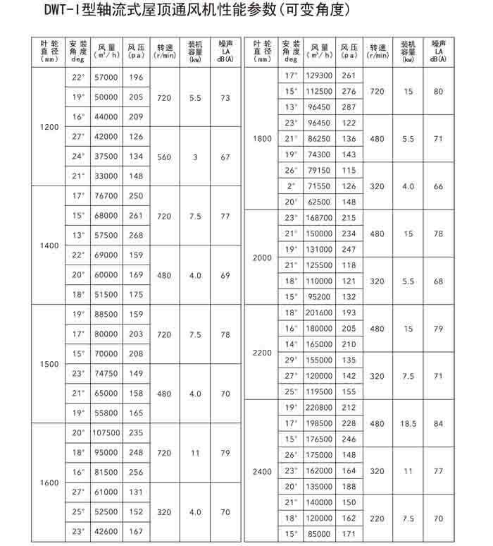 一、DWT-I 系列軸流式屋頂風機